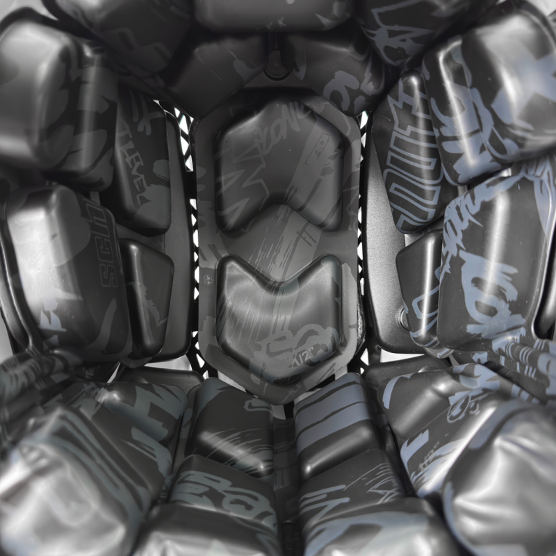Le Schutt F7 AiR Varsity reprend le design du F7 Pro avec sa célèbre Tektonic Mohawk, cette "crête" légendaire apparue sur le ION 4D dans les années 2000. C'est le premier casque doté du système AiR-Lock : une innovation majeure permettant d'ajuster le gonflage via une pompe incorporée à l'arrière, sans besoin de matériel externe.